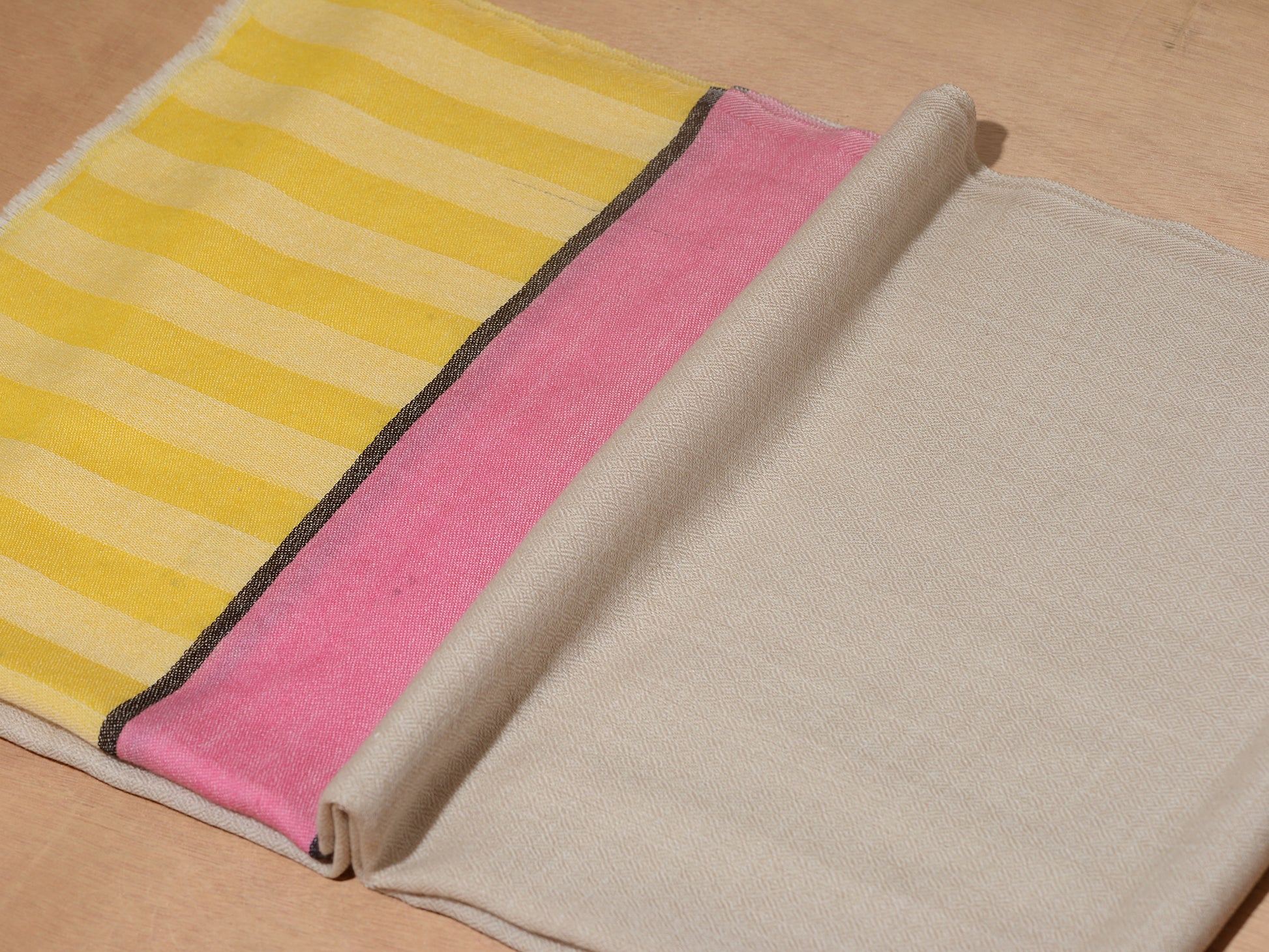 Striped Border Pashmina - Natural with pink and sunshine yellow stripes