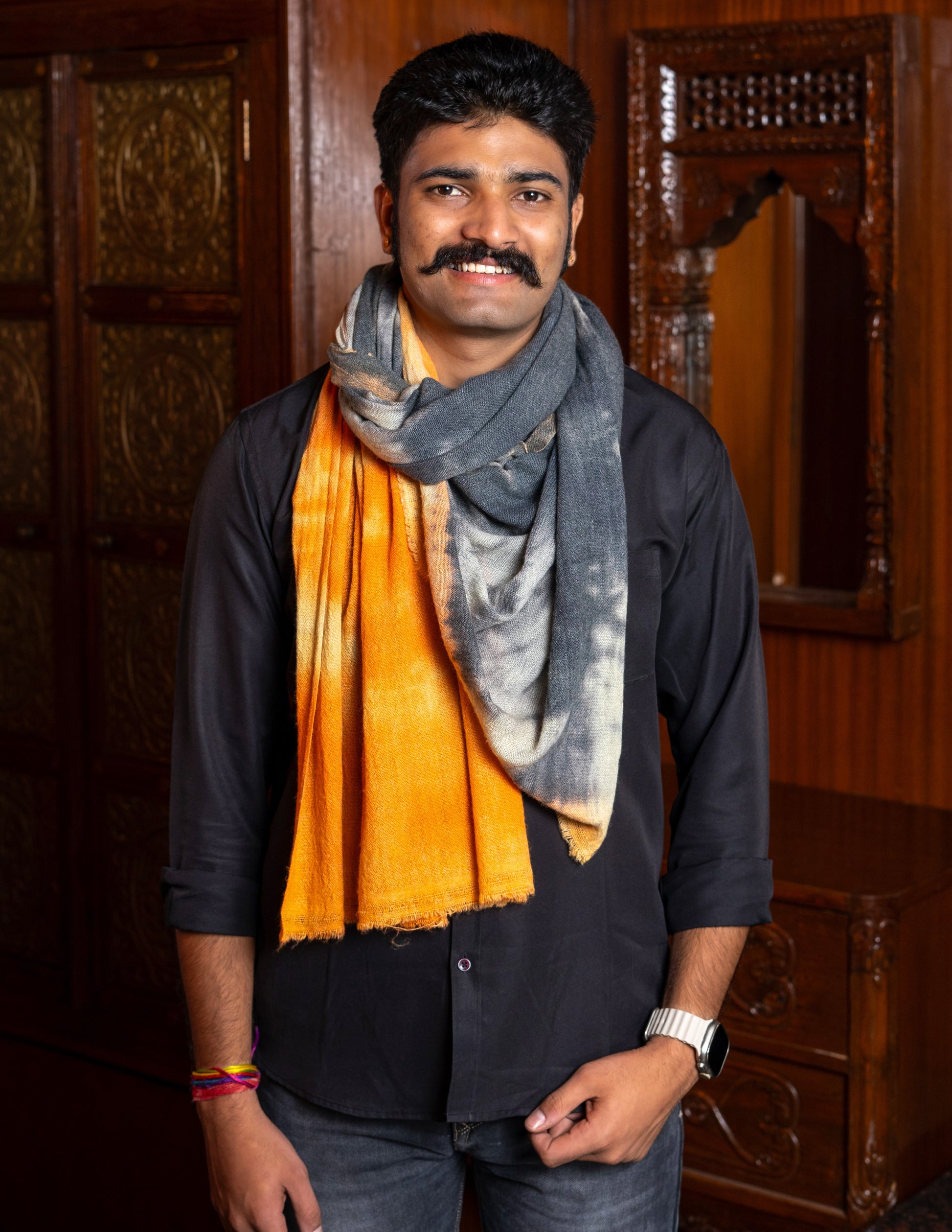Tie and Dye Brush Paint Pattern Super Soft Woolen Muffler For Man | Grey Rust