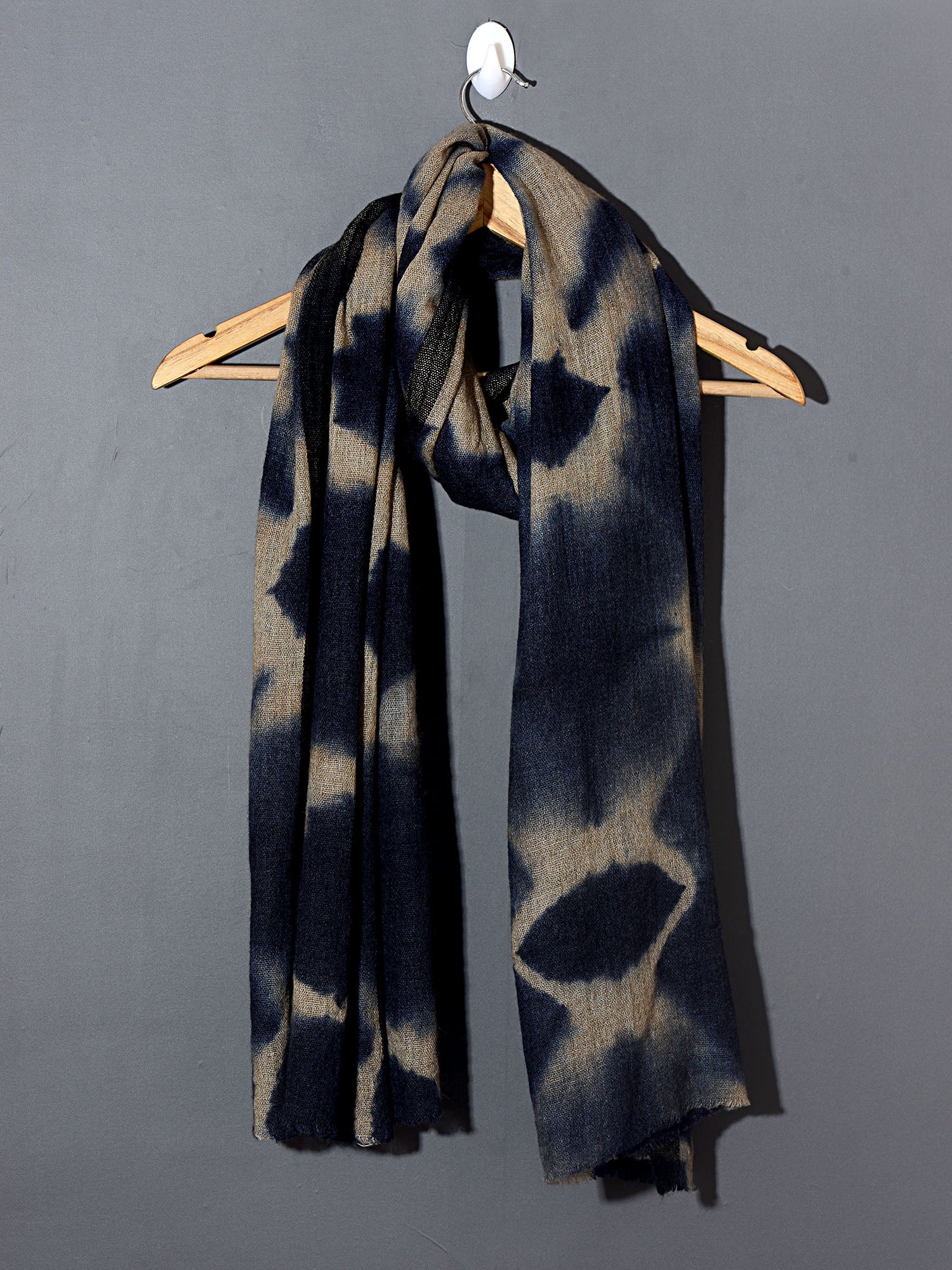 Tie and Dye Super Soft Woolen Muffler Man/Women | Natural with Indigo Blue