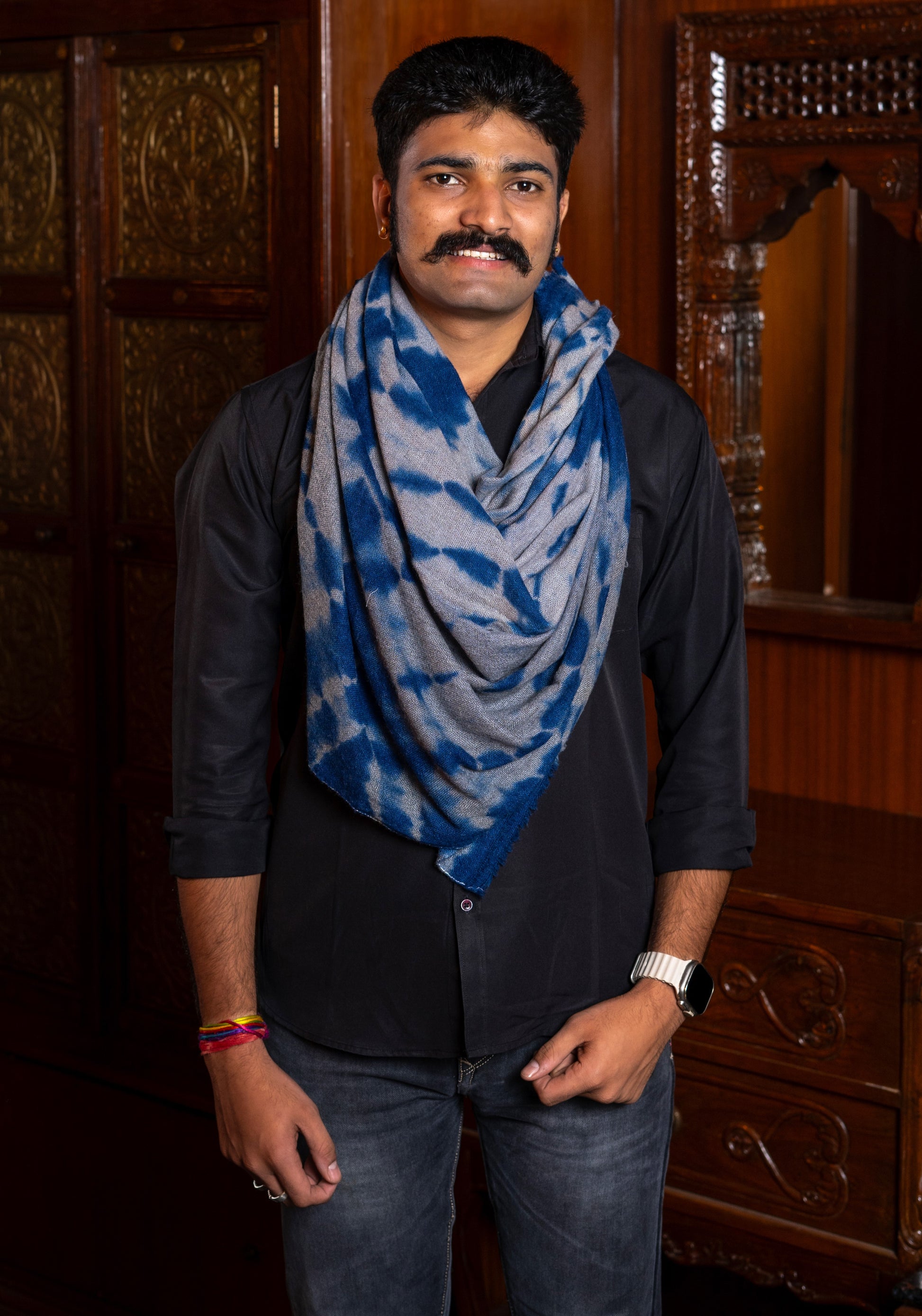 OMVAI presents to you the range of beautiful mufflers which can be used by men and women too. These are made from the finest wool and are stylish, elegant with tie and dye printing in lovely blue tones. This is printed using the traditional tie and dye printing technique using AZO free dyes, which are hypo-allergic, eco-friendly, and non-toxic to the environment.