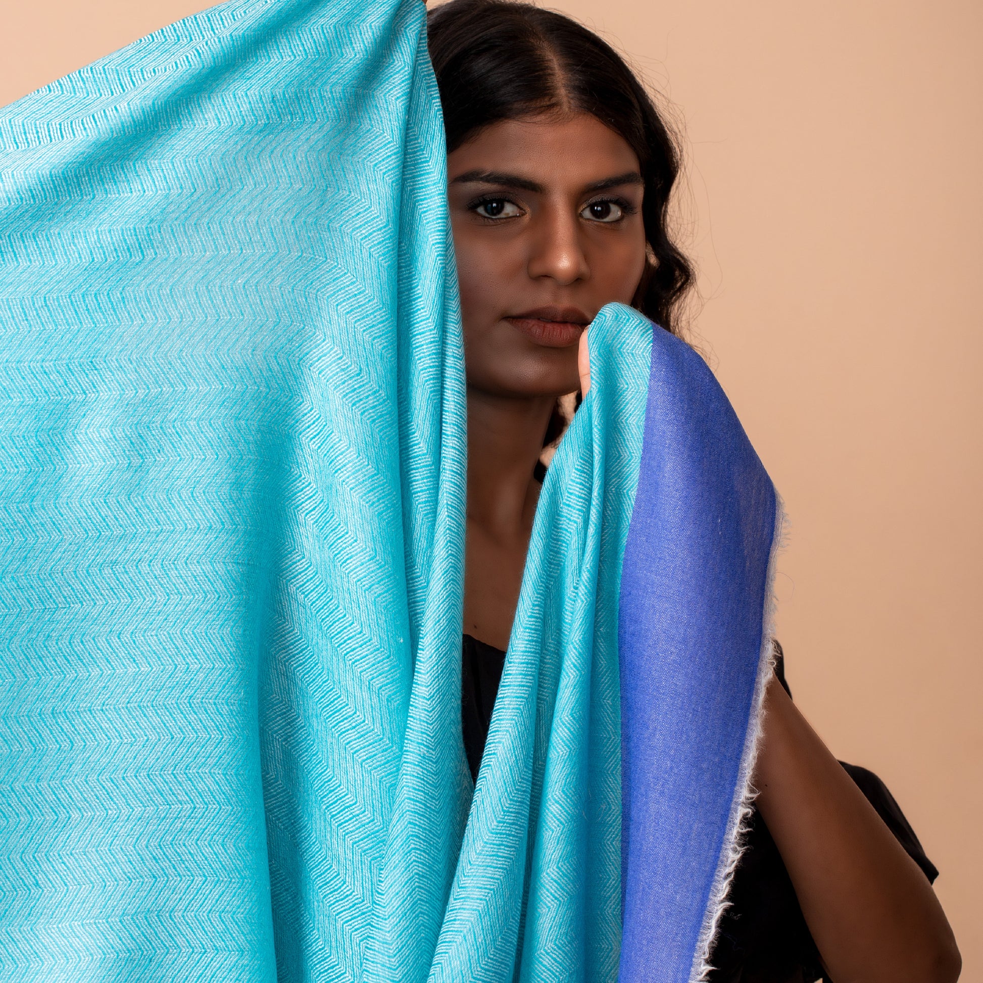 Zig Zag Patterned Pashmina - Turquoise : Blue