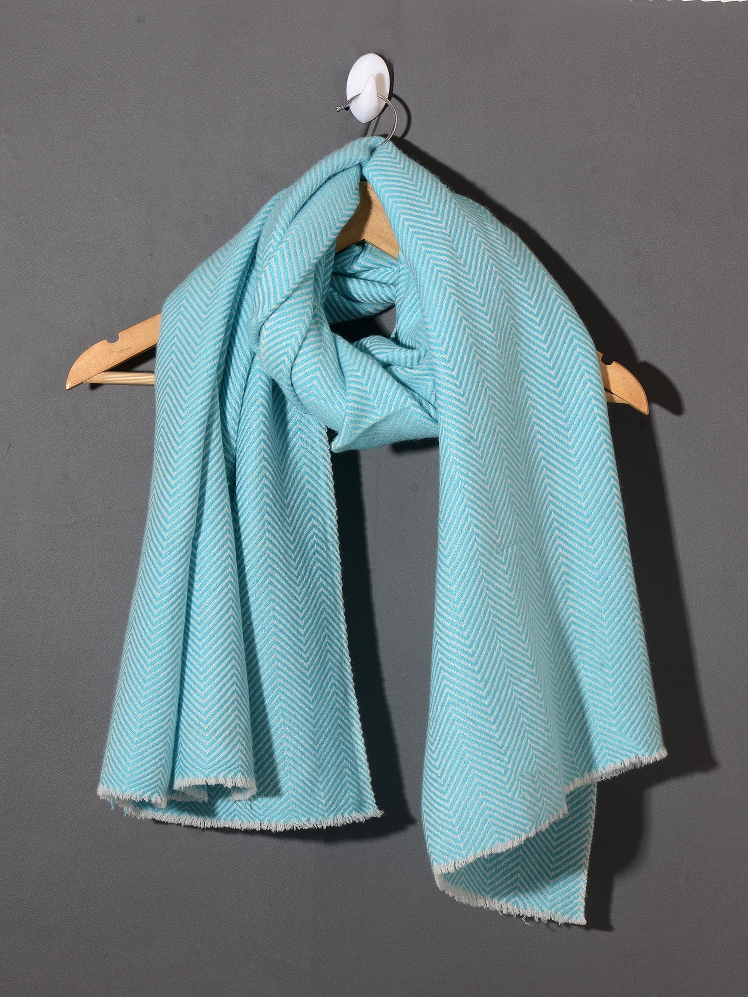 Zig Zag Patterned Super Soft Woolen Muffler - Aqua