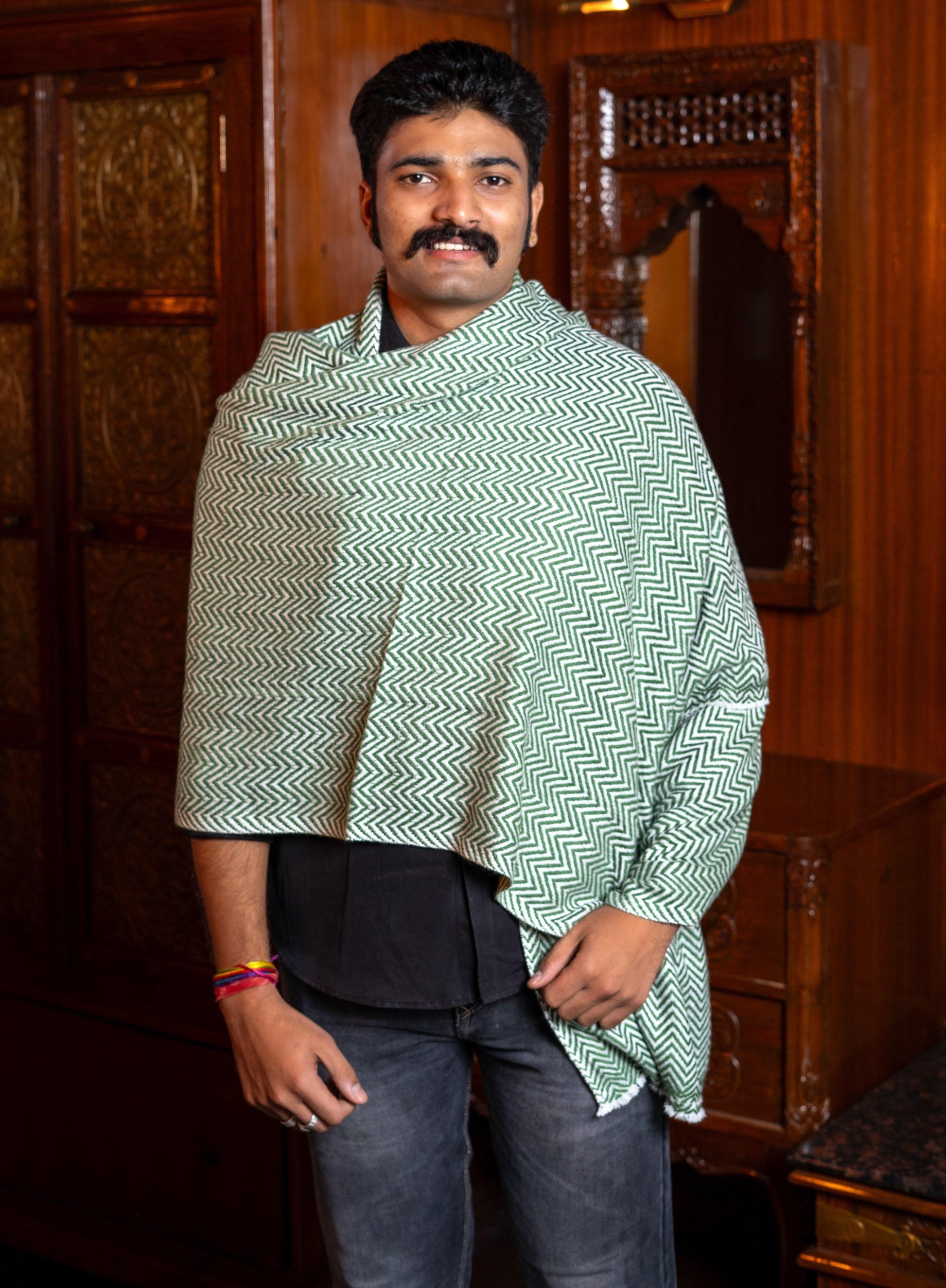 Zig Zag Patterned Super Soft Woolen Muffler - Olive Green
